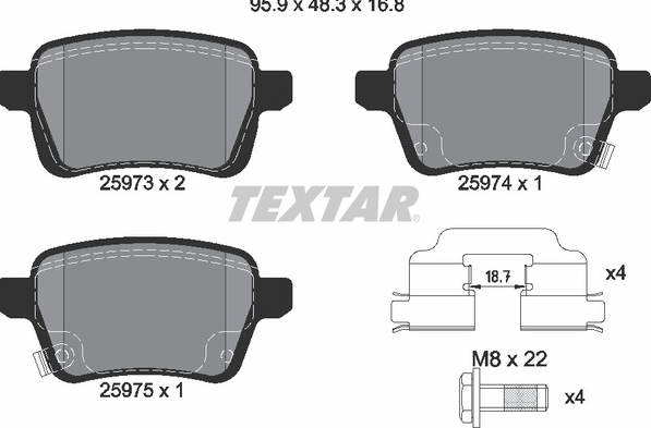 Описание: Автозапчасть фирмы TEXTAR с кодом 2597301 Тормозные колодки