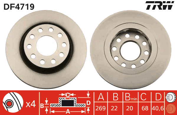 Описание: Автозапчасть фирмы TRW с кодом DF4719 [df4719] trw диск тормозной комплект 2 шт.