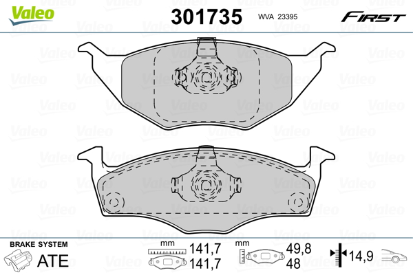 Описание: Автозапчасть фирмы VALEO с кодом 301735 Колодки тормозные