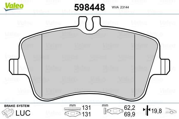 Наименование: Колодки тормозные дисковые передние 598448 от производителя VALEO