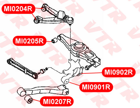 Описание: Автозапчасть фирмы VTR с кодом MI0207R Сайлентблок продольного рычага задней подвески передний