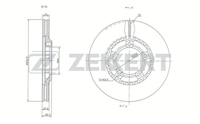 Описание: Автозапчасть фирмы Zekkert с кодом BS5282 Диск торм. перед. Hyundai H100 93- Porter 94-
