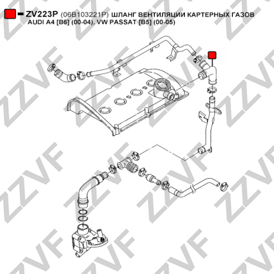 Описание: Автозапчасть фирмы ZZVF с кодом ZV223P ШЛАНГ ВЕНТИЛЯЦИИ КАРТЕРНЫХ ГАЗОВ AUDI A4 [B6] (00-04) VW PASSAT [B5] (00-05)