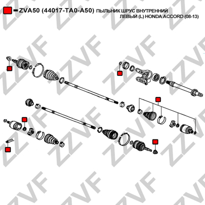 Описание: Автозапчасть фирмы ZZVF с кодом ZVA50 ПЫЛЬНИК ШРУС ВНУТРЕННИЙ ЛЕВЫЙ (L) HONDA ACCORD (08-13)