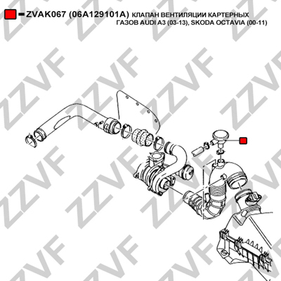 Описание: Автозапчасть фирмы ZZVF с кодом ZVAK067 Клапан вентиляции картерных газов audi a3 (03-13) skoda octavia (00-11)