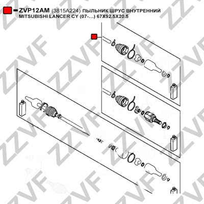 Описание: Автозапчасть фирмы ZZVF с кодом ZVP12AM ПЫЛЬНИК ШРУС ВНУТРЕННИЙ MITSUBISHI LANCER CY (07-…) 67X92.5X20.5