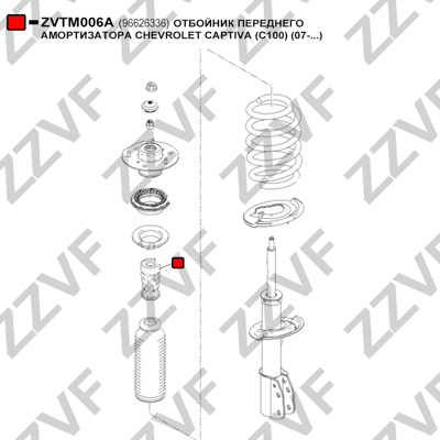 Описание: Автозапчасть фирмы ZZVF с кодом ZVTM006A Отбойник переднего амортизатора chevrolet captiva (c100) (07-...)